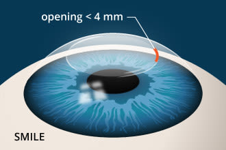 In SMILE, only a very small opening is needed (often less than 4 mm) to facilitate removal of the lenticule.
