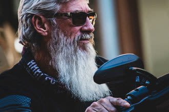 Para un estilo totalmente vintage, pruebe las Ray-Ban Olympian con su montura característica de alambre dorado y una barra superior alargada. También puede optar por monturas más oscuras que solo insinúen su Hell’s Angel interior.