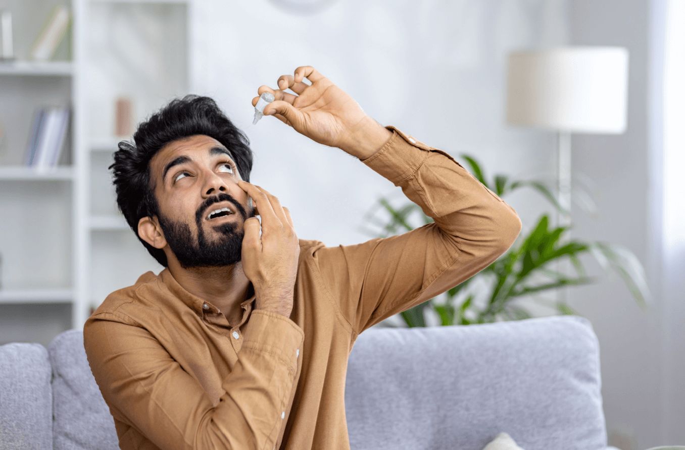 आई ड्रॉप (कृत्रिम आँसू) सूखी आँखों की प्राथमिक चिकित्सा मानी जाती है |