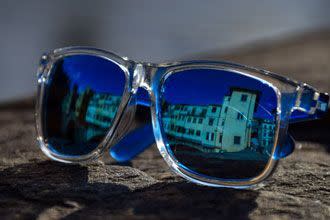 As lentes com revestimento espelhado laranja, verde e azul têm um propósito funcional, especialmente para os esportistas. Elas podem aumentar o contraste e a percepção de profundidade, entre outras coisas. Mas vamos combinar; elas também ficam fantásticas.